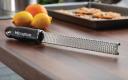 Rasp heel eenvoudig harde kazen, gember, specerijen, chocolade, troffels, noten en meer met deze luxe rasp/zesteur van Microplane. Dankzij het unieke design worden producten perfect gesneden, zonder dat ze daarbij kapot gedrukt worden, waardoor het aroma vrijkomt en de smaak versterkt wordt. Het ergonomische handvat ligt comfortabel in de hand en het rubberen uiteinde voorkomt krassen op uw werkoppervlak. De rasp/zesteur is eenvoudig te reinigen, komt met beschermkap en is ideaal voor gebruik in professionele keukens, maar ook voor thuis. RVS blad