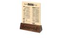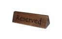 Dit reserveerbordje van stijlvol, donker acaciahout is tevens een menuhouder. Het bordje is namelijk voorzien van een gleuf waarin een menu (tot A4 formaat) geplaatst kan worden. Aan beide kanten voorzien van de tekst 'Reserved'.
