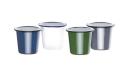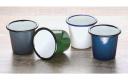 De mokken zijn vervaardigd uit een hoge kwaliteit RVS waarop een zeer duurzame laag gesmolten glas is aangebracht. Hierdoor wordt een zeer glad oppervlak verkregen. Door lang en intensief gebruik krijgt de mok een geheel eigen karakter.