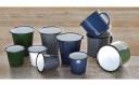 Deze nieuwe collectie emaille servies is een echte eye-catcher op uw tafel. De lijn bestaat uit bekers, mokken, schalen, sauspotjes en borden in diverse kleuren. Deze serie heeft een retro uitstraling en is ideaal voor eetcafé, pizzeria en de trendy horeca. In blauw met zwarte rand.