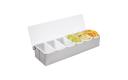 Deze bargarneerunit heeft een RVS behuizing is een praktisch systeem voor het bewaren en scheiden van garnering. De unit is rechthoekig, voorzien van 6 uitneembare bakken en een scharnierdeksel om de inhoud van de bakjes te beschermen.
