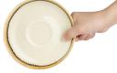 Deze handgeschilderde schotels, geschikt voor de Kiln cappucino kopjes, laten genoeg ruimte voor een lepel, een koekje of een paar suikerklontjes.