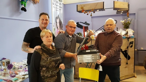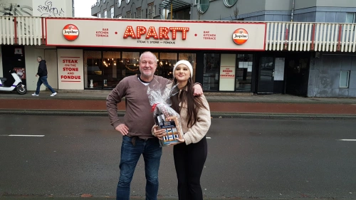 Ook in het nieuwe jaar gaan Toos en Werner weer met frisse moed prijzen uitreiken bij de klanten.