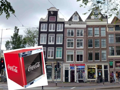 Bij de aankoop van de 2-deurs glasdeur koelkast ontving Alex een gratis Coca-Cola koelkastje.