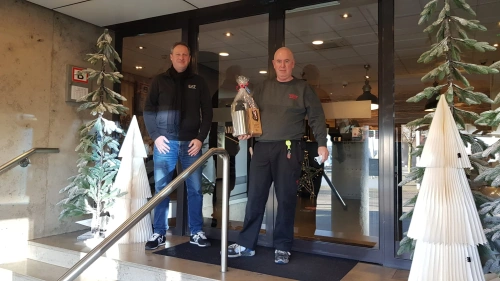 Ook in het nieuwe jaar gaan Toos en Werner weer met frisse moed prijzen uitreiken bij de klanten.