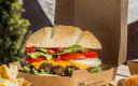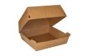 Grote hamburgerbox van bruin karton met een bio coating, ideaal voor het uitserveren en verpakken van de grotere hamburgers.