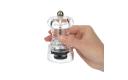 Kleine pepermolen van acryl met stevig keramisch mechanisme. Een stijlvolle accessoire voor op tafel en geschikt voor zowel een moderne als traditionele setting. Schoonmaken met een vochtige doek en eventueel een mild, niet aggresief reinigingsmiddel. Vormt samen met de zoutstrooier (CE319, apart verkrijgbaar) een set.