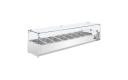 De professionele horeca Polar gekoelde opzetvitrine blijft betrouwbaar en ideaal voor het prepareren van verse salades ect, maximaal 8 x 1/3 GN-Bakken, Met glazen omhuizing om de hygiëne te handhaven. De temperatuur kan eenvoudig geregeld worden d.m.v. eenvoudige maar handige elektronische bediening, en een ingebouwde constante verdamper voorkomt dat er ijs in het koelsysteem komt, voor een efficiënte werking. De Polar biedt een indrukwekkend koelprestaties, zelfs bij temperaturen oplopen tot 43 ° C.