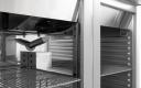 De robuuste structuur in roestvrij staal, vanbinnen en vanbuiten, verzekert een duurzaam gebruik. De koelkast is efficiënt ingericht met strakke, roestvrijstalen zijpanelen, wat maakt dat er geen bijkomende plankgeleiders hoeven te worden gebruikt. De configuratie met 52 verstelbare plankposities, elk 5 cm van elkaar verwijderd, biedt een uitzonderlijke flexibiliteit in de indeling van uw producten. Zelfs gastronormbakken van diverse formaten kunnen probleemloos worden toegevoegd zonder additionele planken.