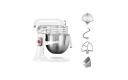 De stapelbare RVS kom die bij deze mixer geleverd wordt heeft een inhoud van 6,9L, waardoor het mogelijk is grote hoeveelheden voedsel te mixen in professionele keukens. Veelzijdigheid is essentieel voor de professionele horeca, de KitchenAid komt hieraan tegemoet met verschillende meegeleverde opzetstukken die het apparaat voor allerlei soorten voedsel geschikt maken.