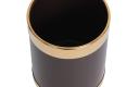 Deze bruine prullenbak van Bolero met gouden rand en lederlook is ideaal voor hotelkamers, slaapkamers, recepties en zelfs voor in huis. Met een inhoud van 10,2 liter is de prullenbak geschikt voor kleine ruimtes en dankzij de poeder coate stalen constructie gaat hij lang mee. Perfect voor thuis en voor professioneel gebruik.