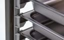 Ontworpen om maximaal 9 GN-pannen van volledige grootte (1/1) te accepteren, is er voldoende ruimte voor het transporteren van grote hoeveelheden voedsel, waarbij elke plank indien nodig ook 1/2GN of 1/3 pannen kan accepteren. Vergrendelbare wielen maken de trolley gemakkelijk te positioneren, terwijl de 3 mm panstops het laden ook gemakkelijk maken. Een uitstekende gebruiksvriendelijke oplossing voor elke horecagelegenheid.