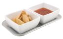 Het APS Pure RVS presenteerblad biedt plaats aan 2 vierkante melamine kommen in wit (GF132) of zwart (GF133) die apart verkrijgbaar zijn. Het blad is een stijlvolle toevoeging aan uw service en presentatie, dat bovendien erg stevig en vaatwasserbestendig is.