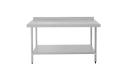 Deze 150 cm lange werktafel van Vogue, met 6 cm achteropstand en gegalvaniseerd onderblad, is perfect voor elke professionele keuken. Het RVS blad maakt de tafel sterk, robuust en hygiënisch en u heeft zo een werkplek die bestand is tegen dagelijks gebruik in veeleisende omgevingen.