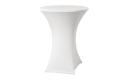 Voor een frisse look gebruikt u deze mooie witte tafelhoes. De stretch hoes vormt zich naar uw tafel en is geschikt voor tafels tot 115 cm hoog en met een tafelblad van maximaal 85 cm in diameter. Het materiaal bestaat uit 90% polyester en 10% elastan. Het elastan zorgt voor de rek in de stof en voorkomt dat de stof kreukt.