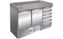 Saro PIZZASTATION PZ 9001 geforceerde Pizzawerkbank, 6 laden, 2 deuren en een granieten werkblad.