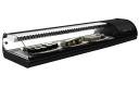 Moderne en elegante opzet koelvitrine uit Spanje. Met presentatie mogelijkheden op 1 niveau van koude gerechten. De geharde glazen ombouw is voorzien van zuinige LED verlichting. Aan de achterzijde voorzien van schuifdeuren en een digitale temperatuur uitlezing. FCKW vrij en voorzien van een geventileerde condensor.