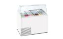 Schepijsvitrine met schuine glasopbouw, voorzien van een frame voor 10 pvc schepijsbakken van 5 liter.