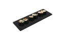 Lange en smalle leistenen schaal voor kleine gerechten. De gladde zijden geven de schaal een verfijnde uitstraling en de lange, smalle vorm maakt de schaal perfect om canapés of andere kleine gerecht