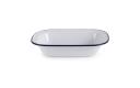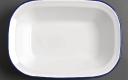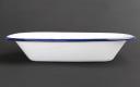 Deze nieuwe collectie emaille servies is een echte eye-catcher op uw tafel. De lijn bestaat uit bekers, mokken, schalen, sauspotjes en borden in diverse kleuren. Deze serie heeft een retro uitstraling en is ideaal voor eetcafé, pizzeria en de trendy horeca. In wit met blauwe rand.
