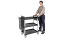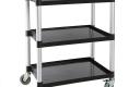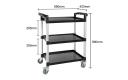 Deze zwarte serveerwagen heeft een sterk frame en is gemaakt van robuust polypropyleen. De serveerwagen is zeer duurzaam en geschikt voor gebruik in hotels, restaurants, cafés en andere horecagelegenheden en kan op verschillende plekken ingezet worden. Afval- en bestekbak worden apart verkocht.