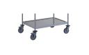 Geheel gelaste RVS constructie, geluidsarme bladen, 4 zwenkwielen, waarvan 2 geremd, belastbaar tot 50 kilo per blad.