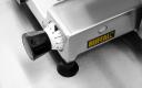 De ingebouwde bescherming en antislip pootjes garanderen een veilige werking en omdat de snijdikte instelbaar is door middel van een draaiknop produceert de machine consistente plakken.