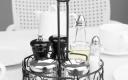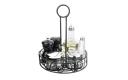 Mooie specerijenhouder die past in elk interieur. Met deze houder heeft u de meest gebruikte specerijen en sauzen bij elkaar op tafel. Het metaal is zeer zeer stevig en geschikt voor dagelijks gebruik. In het midden is er een handige klem voor de menukaart.