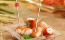 Fingerfood spiesjes met gekleurde parel. Deze spiesjes zijn zeer geschikt voor tapas restaurants en catering.