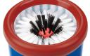 De spoelborstel is zeer eenvoudig in gebruik. U vult hem tot de helft met warm water en voegt er een druppel afwasmiddel of glasreiniger aan toe. Vervolgens steekt u het glas er ondersteboven in en draait u het, zodat de nylon borstel het glas aan beide zijden schoonmaakt.