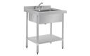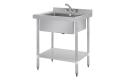 Deze Vogue diepe spoelbak maakt het reinigen van grote pannen, GN bakken en vaat zeer eenvoudig. De opstaande rand voorkomt waterverlies en de achteropstand voorkomt dat producten achter de spoelbak terechtkomen. Verstelbare poten zorgen voor stabiliteit en stevige onderblad biedt onmisbare opbergruimte voor schoonmaakproducten en chemicaliën. Kraan wordt apart verkocht.