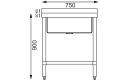 RVS spoelbak met onderblad en achteropstand 75 x 60 x 96 cm
