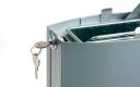Esthetische en duurzame, staande asbak met RVS uitdoofplaten aan beide zijden. Tijdloos design. Volledig van metaal met een zeer duurzame weersbestendige poedercoating. Eenvoudig te legen. De top scharniert opzij waardoor de binnenbak er gemakkelijk uit te nemen is.