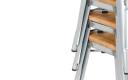 Assortiment staal meubilair perfect voor cafés en bars. Een stijlvol design en een hoog niveau van functionaliteit. Erg stevig en eenvoudig te reinigen. Modellen zonder rugleuning zijn stapelbaar tot 5 stuks. De grijze finish en contrasterende essenhouten zitting vormen een unieke stijl. Voor buitengebruik moet het hout onderhouden worden, gebruik hiervoor teakolie DL476.
