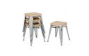 Zilveren stalen krukjes houten zitting 4 stuks Bolero GM 634