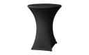 Deze zwarte hoes geeft uw statafel een chique uitstraling. Het materiaal van de statafelhoes bestaat uit 90% polyester en 10% elastan, wat ervoor zorgt dat de stof rekbaar is. De hoes is geschikt voor tafels tot 115cm hoog, met een tafelblad van maximaal 85cm in diameter. Het elastan voorkomt dat de stof kreukt en maakt strijken overbodig.De hoezen zijn uitgerust met pvc-voetjes, deze pvc-voetjes worden aangebracht met elastische garen voor optimale versteviging.