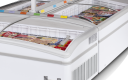 Supermarkt vriezer met extra grote panoramaglasdeksels