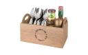 Houd al uw bestek en specerijen bij elkaar in deze massief eiken tafelcaddy van Olympia. Door zijn compacte formaat is hij ideaal voor op tafels: hij neemt niet veel plaats in en is toch groot genoeg. Om schoon te maken is afnemen met een vochtige doek voldoende.
