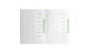 tijd en een kolom waarin de verantwoordelijke persoon zijn of haar paraaf kan zetten. Met geplastificeerde omslag zodat hij gemakkelijk schoon te houden is.