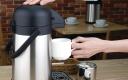 Dankzij het dubbelwandige ontwerp blijft de buitenkant van de kan veilig koel en dankzij het eenvoudig te bedienen pompmechanisme kunnen gasten ook zelf makkelijk een drankje inschenken.