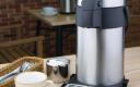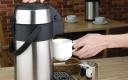 Dankzij het dubbelwandige ontwerp blijft de buitenkant van de kan veilig koel en dankzij het eenvoudig te bedienen pompmechanisme kunnen gasten ook zelf makkelijk een drankje inschenken.