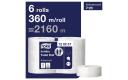 Met een lengte van maar liefst 360m gaat iedere toiletrol enorm lang mee, zodat het steeds moeten vervangen van toiletrollen tot het verleden behoort. Het 2-laags materiaal zorgt dat het toiletpapier goed stevig en absorberend is. Uw gasten gebruiken zo minder papier en u bespaart op de langere termijn geld.