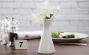 Klassiek vormgegeven vaasjes. Een klein bloemetje op de tafel zorgt voor sfeer en gezelligheid, bij deze witte vaasjes past elke kleur. De vaasjes hebben gerolde randen en zijn daardoor beter bestand