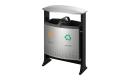 Recycling afvalbak van gepoedercoat staal met regendak, voorzien van 2 kunststof binnenbakken (2x 39 ltr). Zeer luxe vormgeving en afwerking. Afsluitbaar. Kantelsysteem voor eenvoudige toegang en het makkelijk legen van de afvalbak. Te bevestigen aan de grond.