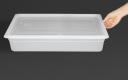 Polypropyleen GN 1/1 bakken met luchtdicht deksel om voedsel langer vers te houden en geschikt voor de bereiding van warm en koud voedsel. Wanneer ze leeg zijn passen de bakken in elkaar en vol zijn ze stapelbaar, waardoor ze weinig ruimte innemen. Ze zijn vriezerbestendig en bestand tegen temperaturen van -40°C tot +70°C.