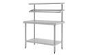 Deze handige werktafel met meerdere planken zorgt voor maximale opbergruimte boven het werkblad, met plek voor alle benodigdheden, en houdt zelfs de kleinste keuken netjes en opgeruimd. Gemaakt van sterk, hoge kwaliteit RVS met gepolijste afwerking en gegalvaniseerde poten en onderblad. Deze werktafel is geschikt voor 1/3, 1/6 en 1/9 GN bakken.