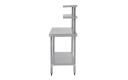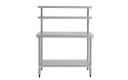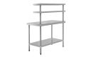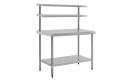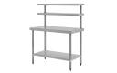 Met deze RVS werktafel van Vogue creëert u eenvoudig een praktische en efficiënte plek om voedsel te bereiden. De werktafel is gemaakt van RVS 304 en daarom zeer stevig, duurzaam en hygiënisch. De werktafel is voorzien van 2 wandplanken voor het opbergen van ingrediënten of keukengerei, waardoor u alles binnen handbereik heeft en minder ruimte nodig heeft om items op te bergen. Perfect voor gebruik in professionele keukens.