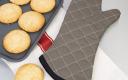 Deze elleboog lange, brandvertragende ovenwant, gemaakt van extra dik, gewatteerd materiaal, beschermt tegen temperaturen tot 250°C. Hierdoor kunt u op een veilige manier hete producten uit de oven pakken.