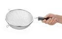 Het hoge kwaliteit handvat ligt prettig in de hand, waardoor u er lange tijd comfortabel mee kunt werken. Dankzij twee handige haken kunt u de zeef op een pan of kom plaatsen en door het oog in het handvat bergt u de zeef eenvoudig op.