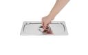 Deze deksel is geschikt voor gebruik met GN 1/3 bakken en is ontworpen om warmte vast te houden, waardoor de inhoud langer vers en warm blijft. Omdat de deksel is gemaakt van sterk RVS kan het gebruikt worden voor koud en warm voedsel, om het te koken, op te slaan, op te warmen en te koelen.